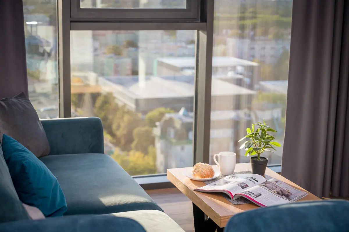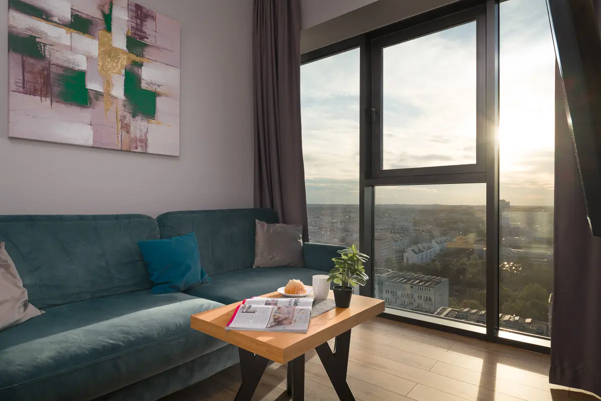 Wyobraź sobie, że meldujesz się w apartamencie, a za oknem rozpościera się panorama całego miasta. Słońce powoli chowa się za horyzont, malując niebo na różowo, a Ty z filiżanką kawy obserwujesz, jak Szczecin budzi się do nocnego życia. To nie opis sceny z filmu, to rzeczywistość w Hanza Tower.