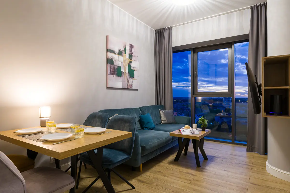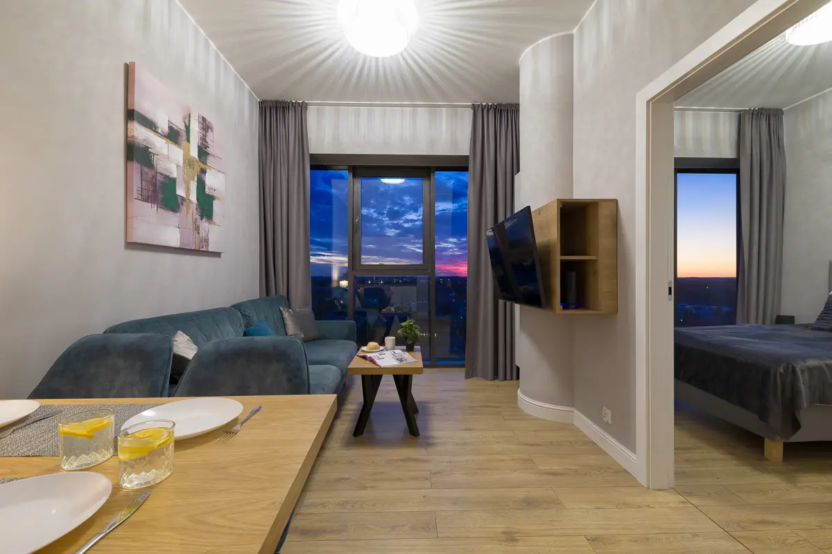 Zdjęcia wykonane o zmierzchu to potężne narzędzie sprzedażowe. Pokazują apartament nie tylko jako miejsce noclegowe, ale jako miejsce przeżyć.